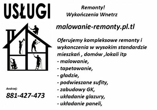 Witam. Szukam zleceń na remonty wykończenia wnętrz.Prowadze jednoosobowa działalność, Jestem prosta , mila, otwartą ...